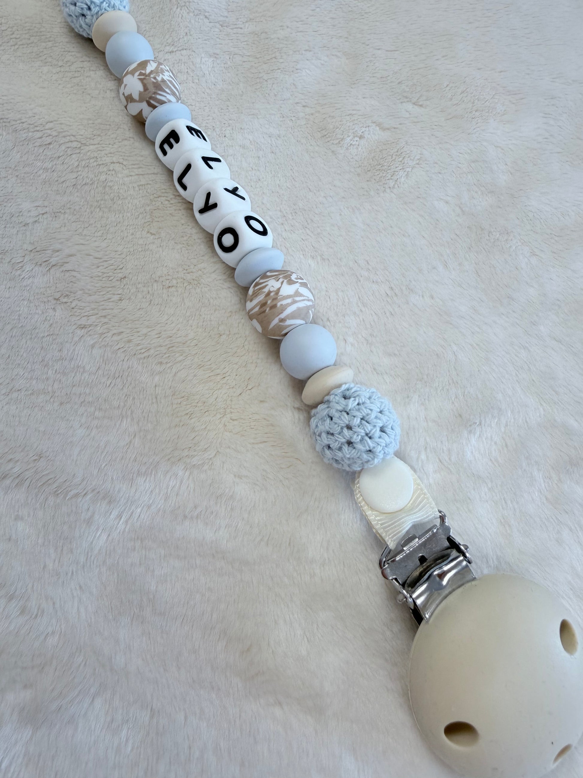 Les perles en silicone ou en bois ajoutent une touche naturelle tout en assurant la sécurité et la douceur au contact de bébé.