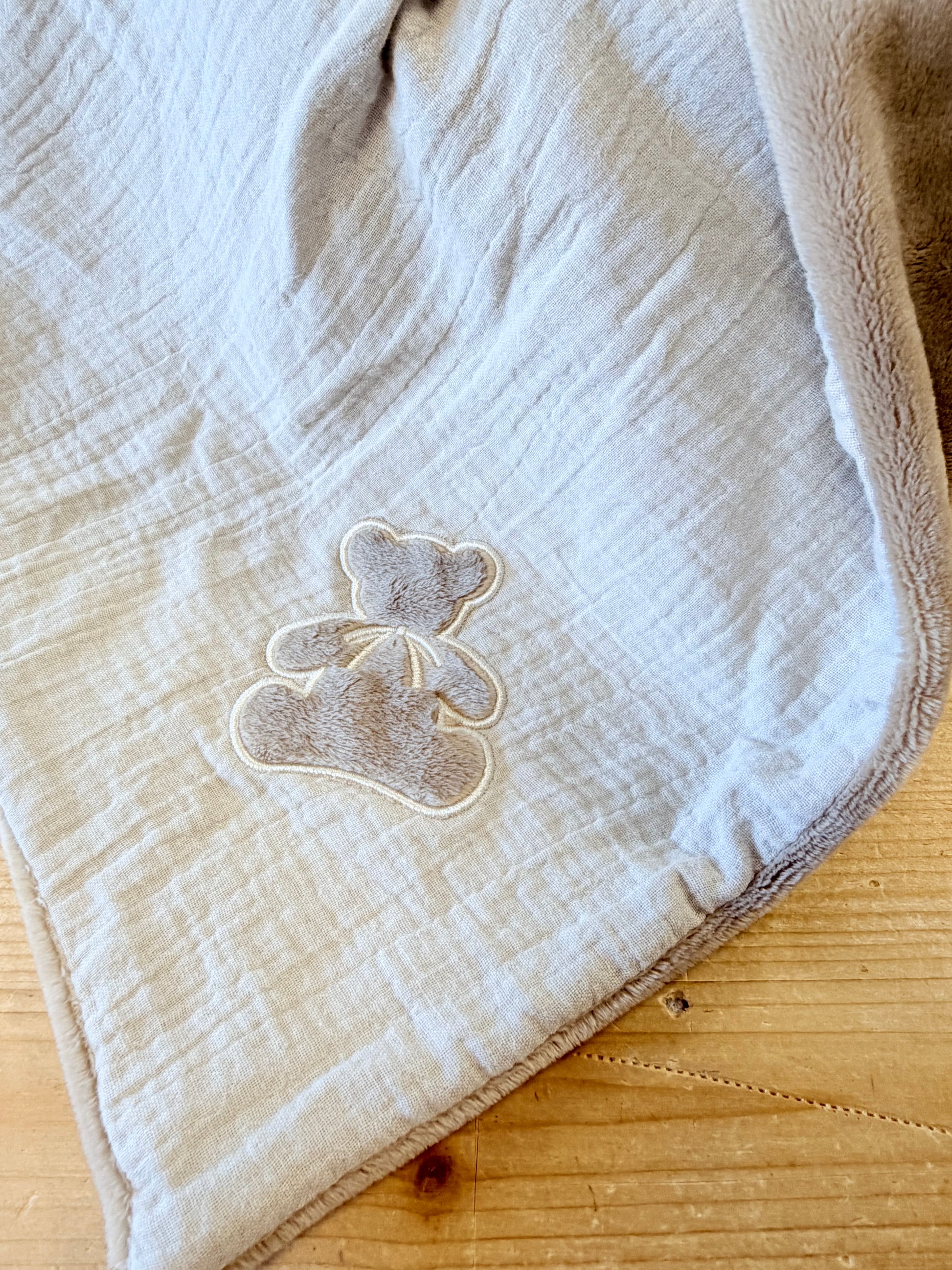 Double gaze de coton beige et minky lisse beige