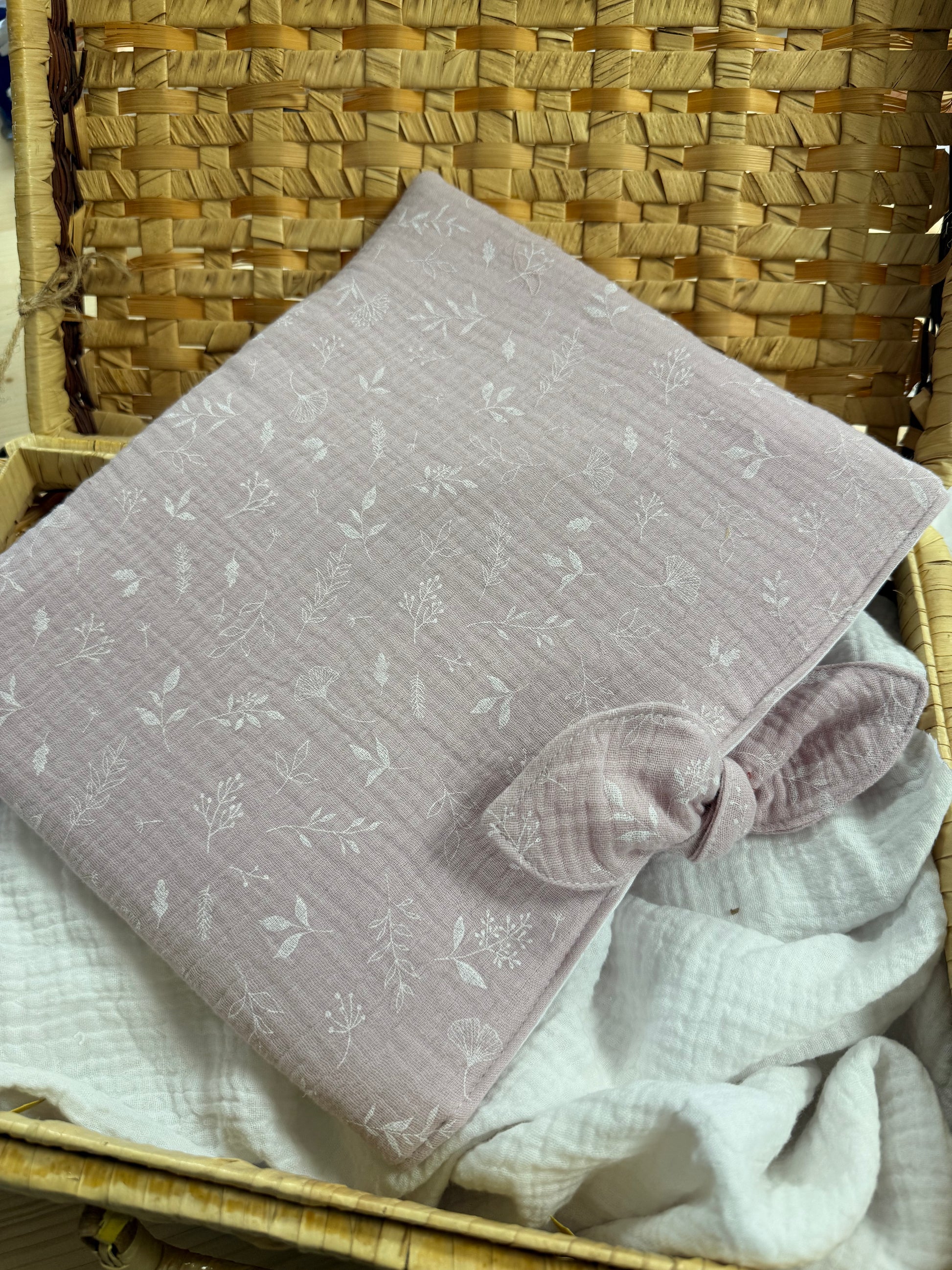 Pochette à livre broché fleurs parme